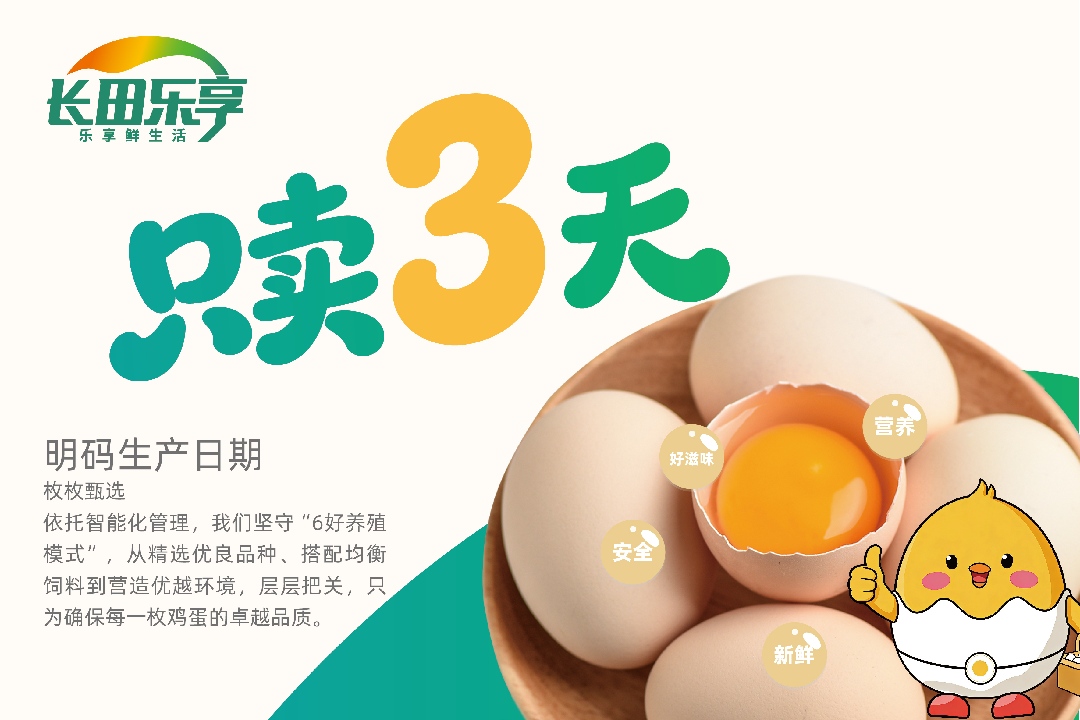 每一枚長田樂享“濟(jì)蛋”上,都清晰標(biāo)注生產(chǎn)日期,消費(fèi)者拿到雞蛋,一眼就能看出它是哪天出生的,是不是超新鮮的“三天蛋”。