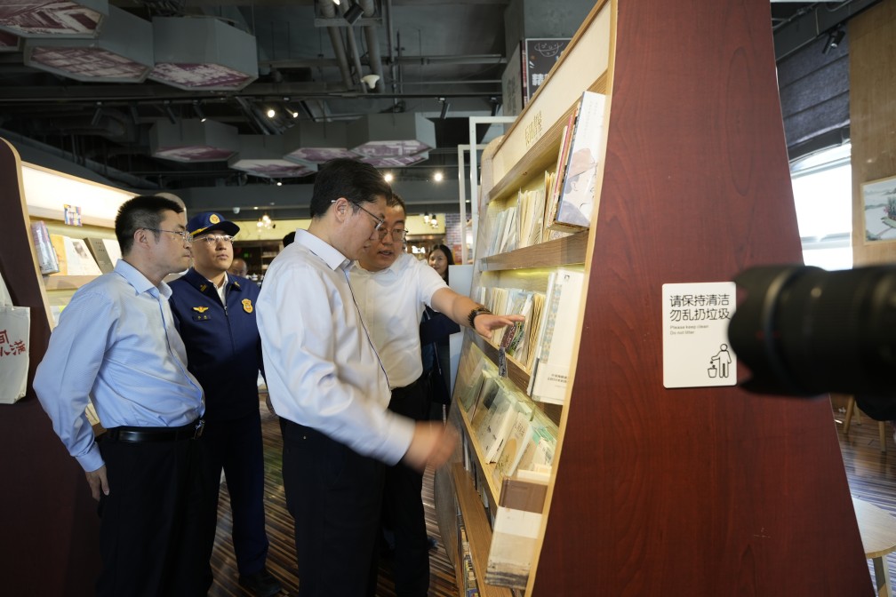 王區(qū)長對華百廣場進行全面視察,先后前往必勝客、智航文具、長田書屋、半天妖烤魚、橫店影城等多家商戶。每到一處,他都細致詢問門店負(fù)責(zé)人假期客流趨勢、促銷活動安排及服務(wù)保障措施,并親切與商戶代表交流,了解經(jīng)營狀況與實際需求。在橫店影城,他特別關(guān)注節(jié)日檔期影片排片及觀影安全預(yù)案;在長田書屋,他駐足良久,查看書屋的運營情況,強調(diào)商業(yè)與文化的深度融合是提升城市品質(zhì)的關(guān)鍵所在。