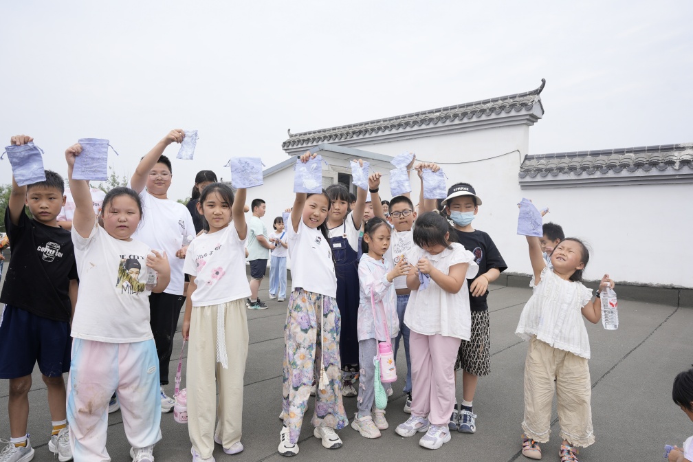 扎染工坊內(nèi),孩子們化身為小小的藝術(shù)家。他們用手中的染料和布料,大膽地?fù)]灑著自己的創(chuàng)意,將原本素白的布料染成藍(lán)白相間的圖案,仿佛將天空與大海的美麗濃縮其中。每一塊布料都承載著孩子們的奇思妙想,展示著他們對(duì)色彩與美的獨(dú)特理解。
