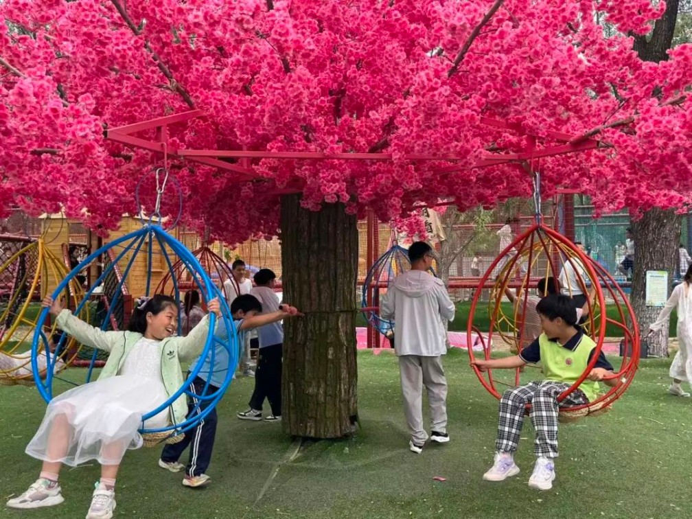 孩子們?cè)诹窒聵?lè)園里盡情地釋放著自己的活力。他們?cè)诓莸厣媳寂苕覒?,像一群自由自在的小天使;他們?cè)诟鞣N游樂(lè)設(shè)施間穿梭,歡聲笑語(yǔ)回蕩在整個(gè)樂(lè)園。陽(yáng)光透過(guò)樹(shù)葉的縫隙灑在他們身上,形成一片片金色的光斑,仿佛是大自然為他們披上的一層美麗的紗衣。在這里,他們忘卻了所有的煩惱和疲憊,只享受著這片刻的自由和快樂(lè)。